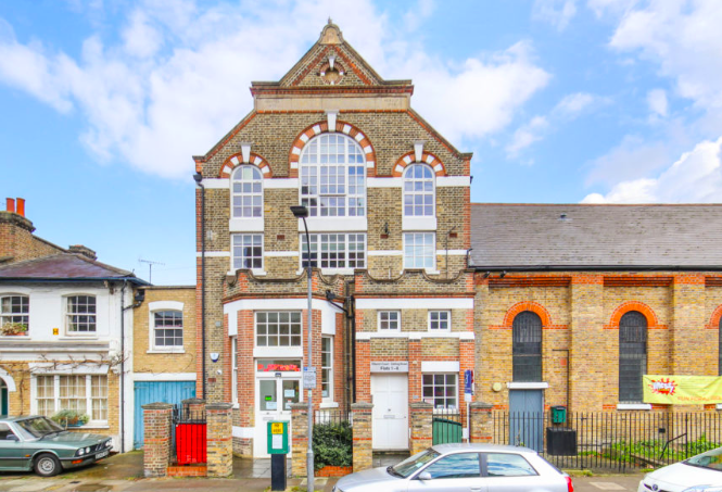 元教会の建物をモダンに改装したメゾネットタイプの2ベッドルームフラット。最上階のベッドルームとバスルームは天窓の設置で明るく、収納スペースも完備。レストランやカフェで賑わうHammersmith駅、Westfield Shoppong Centreまでも徒歩圏内、カップルにオススメの物件。