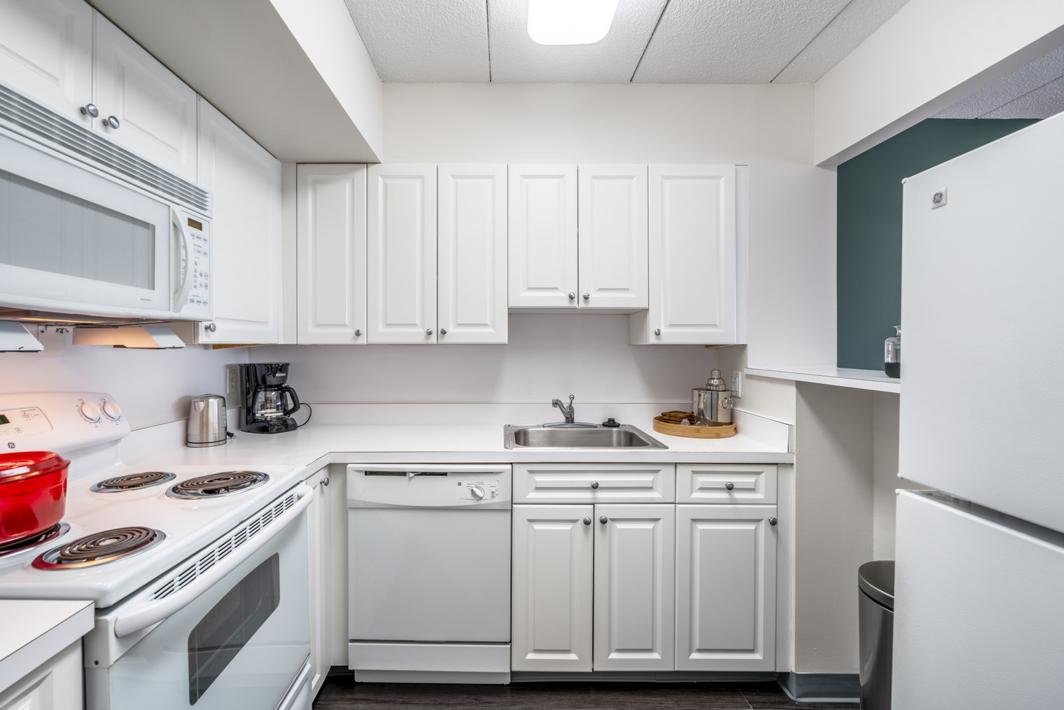 ●敷地内にフィットネスジム、カンファレンスルーム、屋外プールがあります。