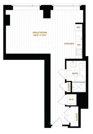 ●寝室エリアが分かれているタイプのスタジオ(ワンルーム)