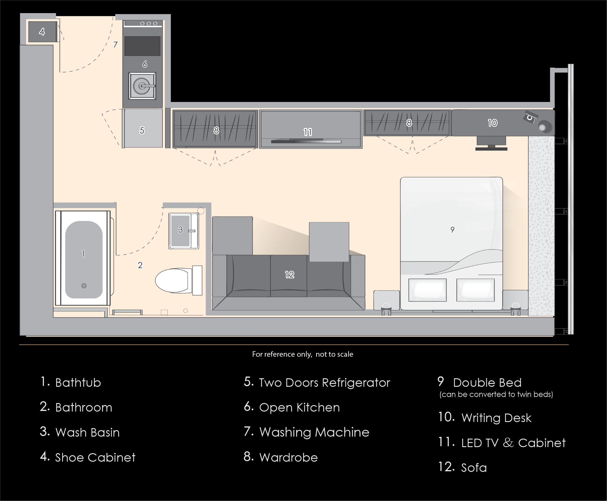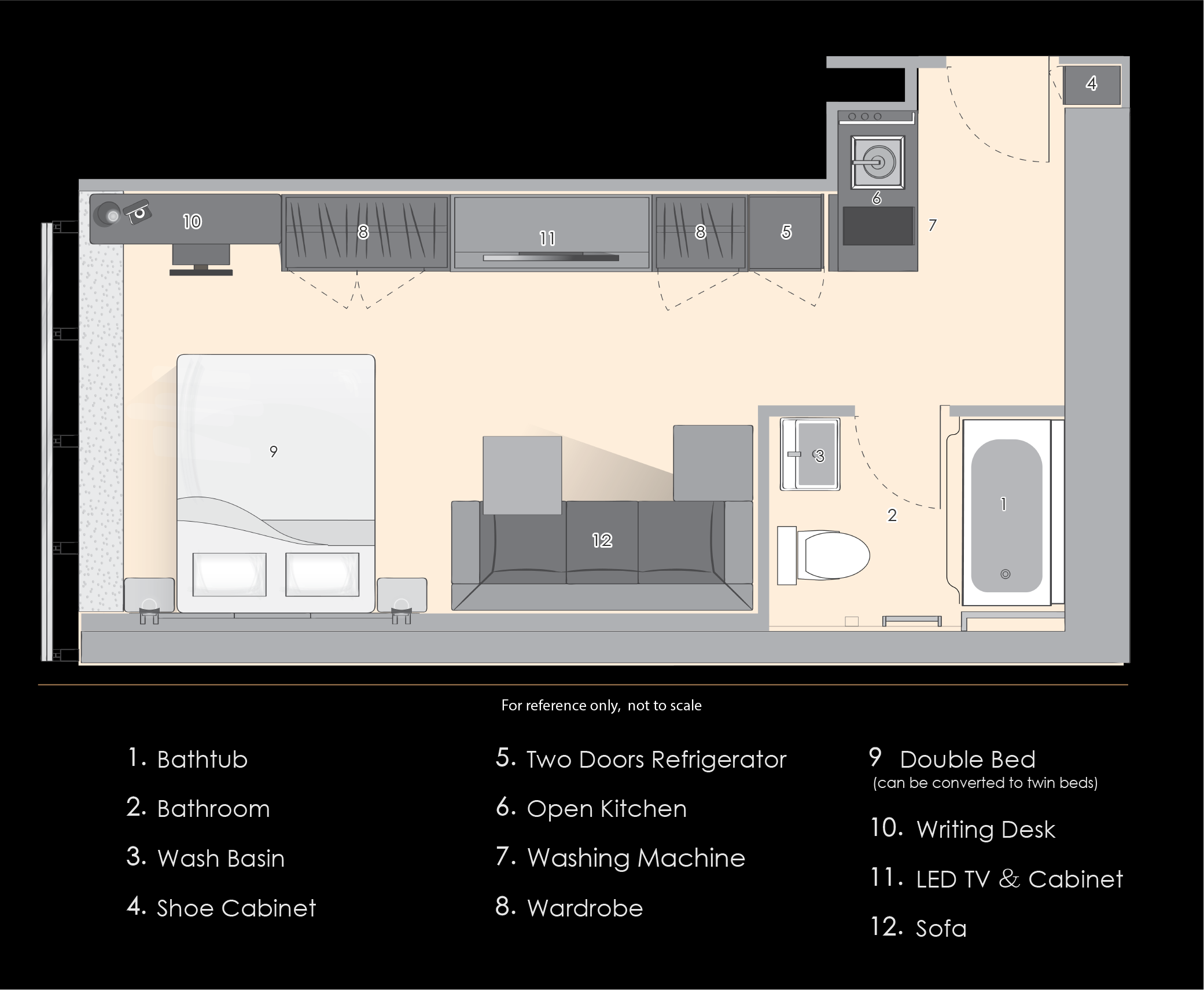 ションワン(上環)駅に程近い、築浅サービスアパートメントです。マカオ行きフェリーターミナル・各方面行きバスターミナルも近く交通も非常に便利なロケーションに位置しています。サウスタワー棟は2018年開業の全1棟81戸(ハーバービュールームとシティビュー)からなり、間取りはSTUDIOタイプ~2BEDルームタイプとなります。お部屋内は明るく綺麗で家具家電製品が完備されています。(TV・DVD・無料WIFI・電子レンジ・ソファー・ベッド・アイロン・ヘアドライヤー・冷蔵庫・洗濯機・エアコン・他) 建物共用部にはジムが併設されています。
