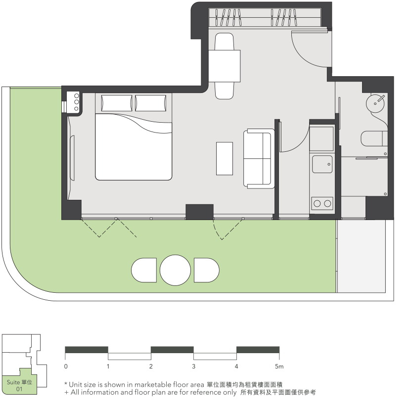 | 広さ | 491 sqft (約 45.663 m²) |