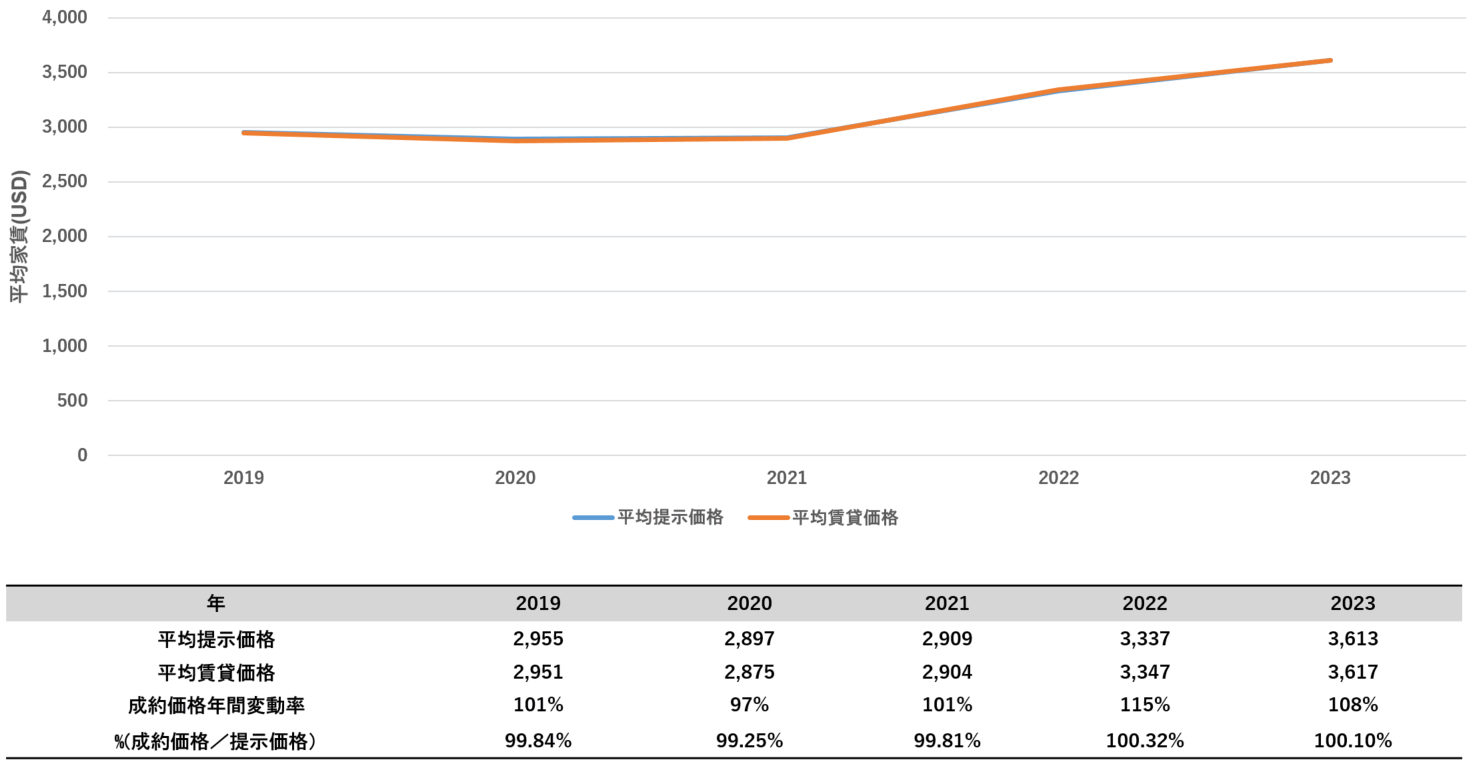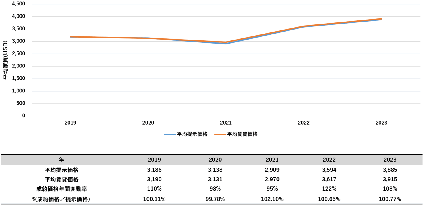 また、2020年3月に新型コロナウイルス対策としてロックダウンが行われ、一時留学生が渡米できないといった大きなマイナス要因があったにもかかわらず、家賃下落は約2%で募集期間は約1週間長くなる程度にとどまり、大きな影響を受けませんでした。