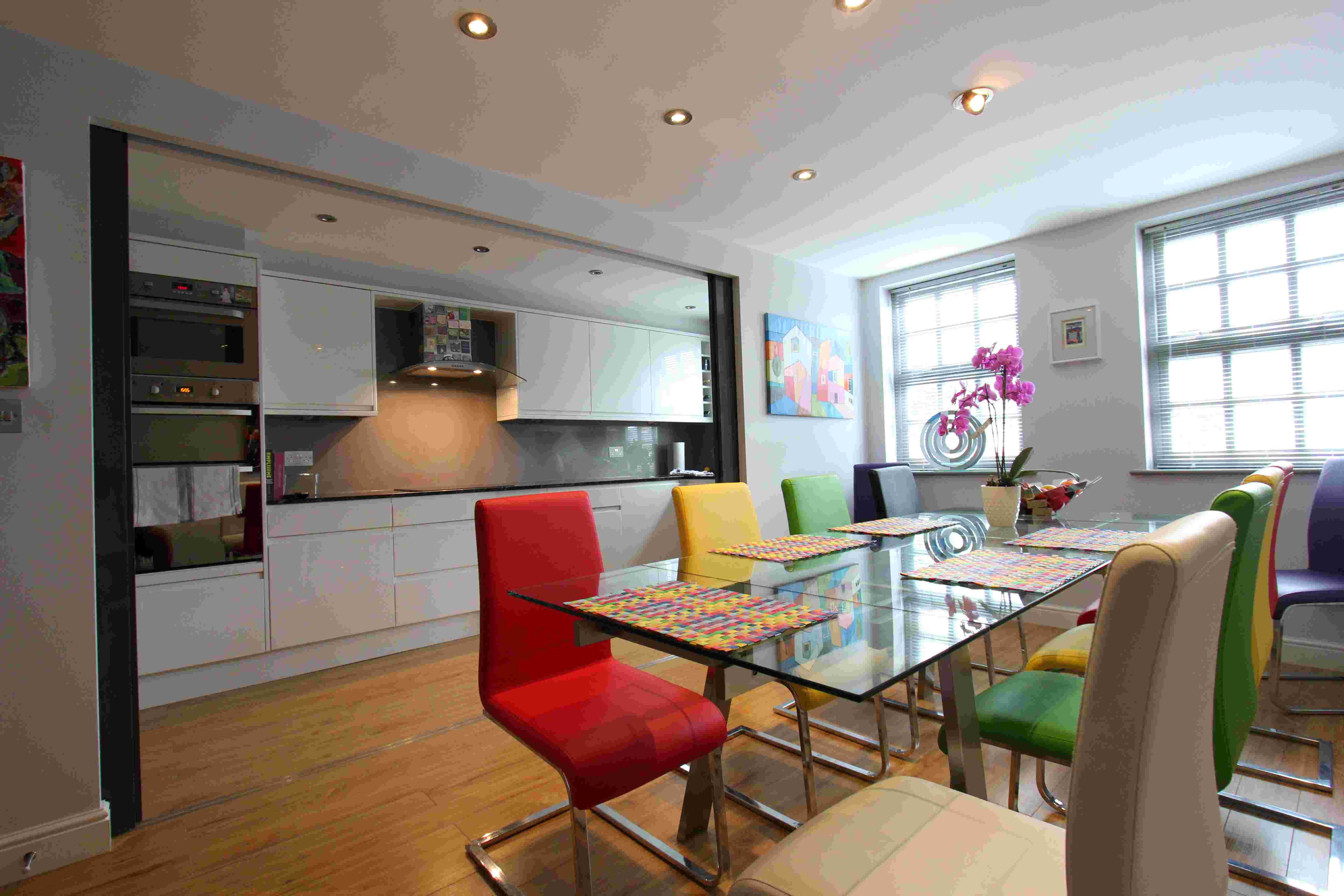 モダンな4ベッド3バスルーム。地上階にはリビングと書斎・お手洗い、2階にキッチンとダイニングルームあり。4つのベッドルームのうち2つにはオンスイートのシャワールームが付いており、3階には別途バスタブ付のバスルームもあり。裏庭も付いており、お子様連れのご家族様に特におすすめの物件。※家具無しの物件です