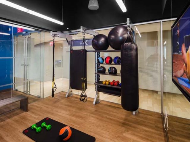 ビル内にジム・屋外プール、駐車場、ラウンジ、テラスも完備。