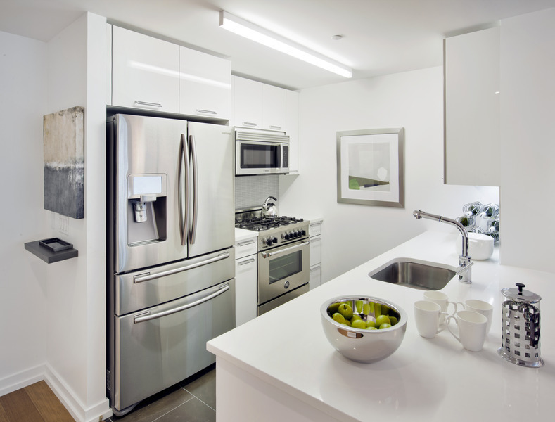 アッパーウェストの新築高級アパートメント。急行駅72nd street タイムスクエアまで1駅の好立地。洗濯・乾燥機室内に完備。バスルームには固定のシャワー、シャワーヘッドが付いています。ミラーにはTV モニター設置済みでご入浴中にTVをご覧頂けます。