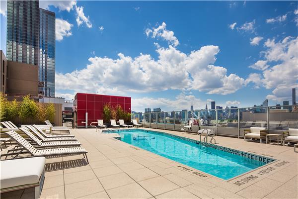 コンシェルジュ・ジム・テラス・アウトドアプール、バーベキュースペースなどの施設も充実しています。アパートテラスから眺めるマンハッタンは絶景。マンハッタンへのアクセスもひと駅と便利なので、イーストサイドに通勤・通学される方にオススメ。