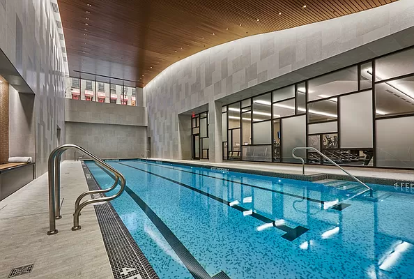 ミッドタウンの築浅物件。フルタイムドアマン、ジム、バスケットコートなどのアメニティ充実。室内洗濯乾燥機完備。