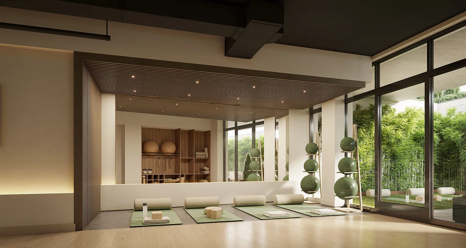 ジム、テラス、ラウンジなど完備。