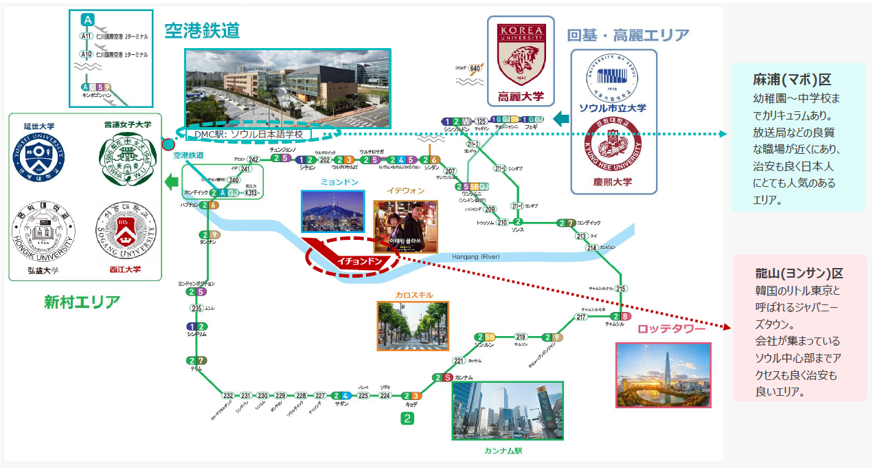 日本人に人気のある「龍山区」・「麻浦区」は、職場が集まっているソウル中心部や学校までのアクセスが良いです。
