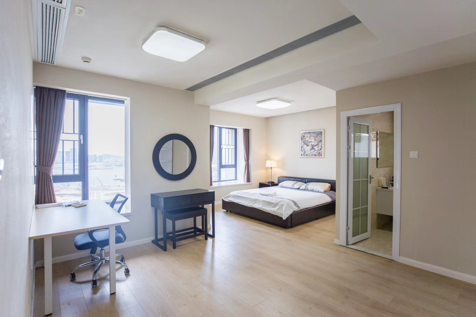 新品の家具家電を取り揃えました。オーシャンビュー、2面窓があり通風良好。主寝室は広く、書斎スペースもあり。たっぷり収納。独立キッチンで匂いも気にせず料理ができます。