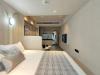 落ち着いた統一感のある内装。電気コンロもあるので簡単な料理もしていただけます。シャワーガラス付きで水回りも安心。