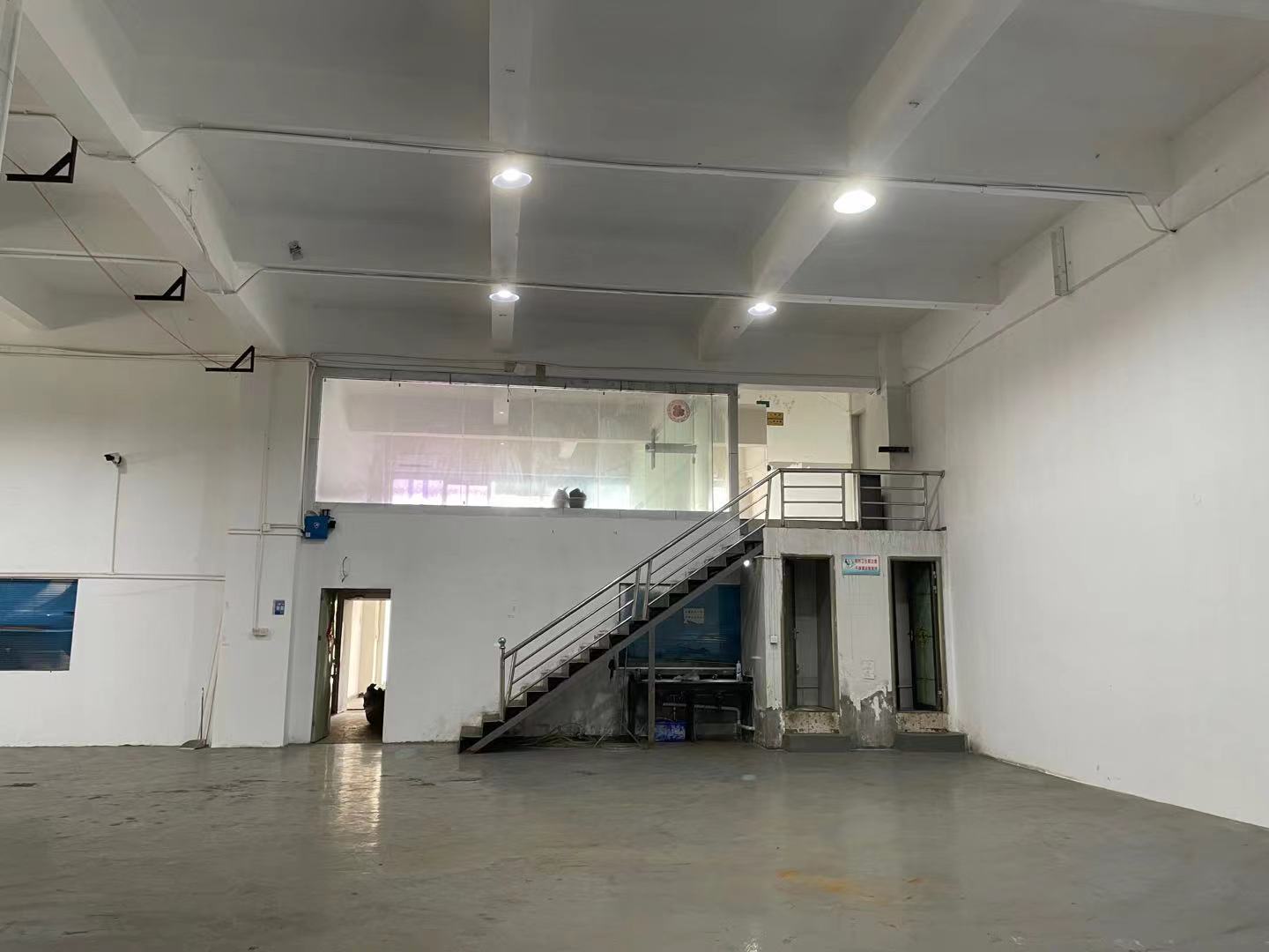 1階倉庫、事務室、会議室あり。入搬出に便利なプラットホーム2か所。高さ6m。