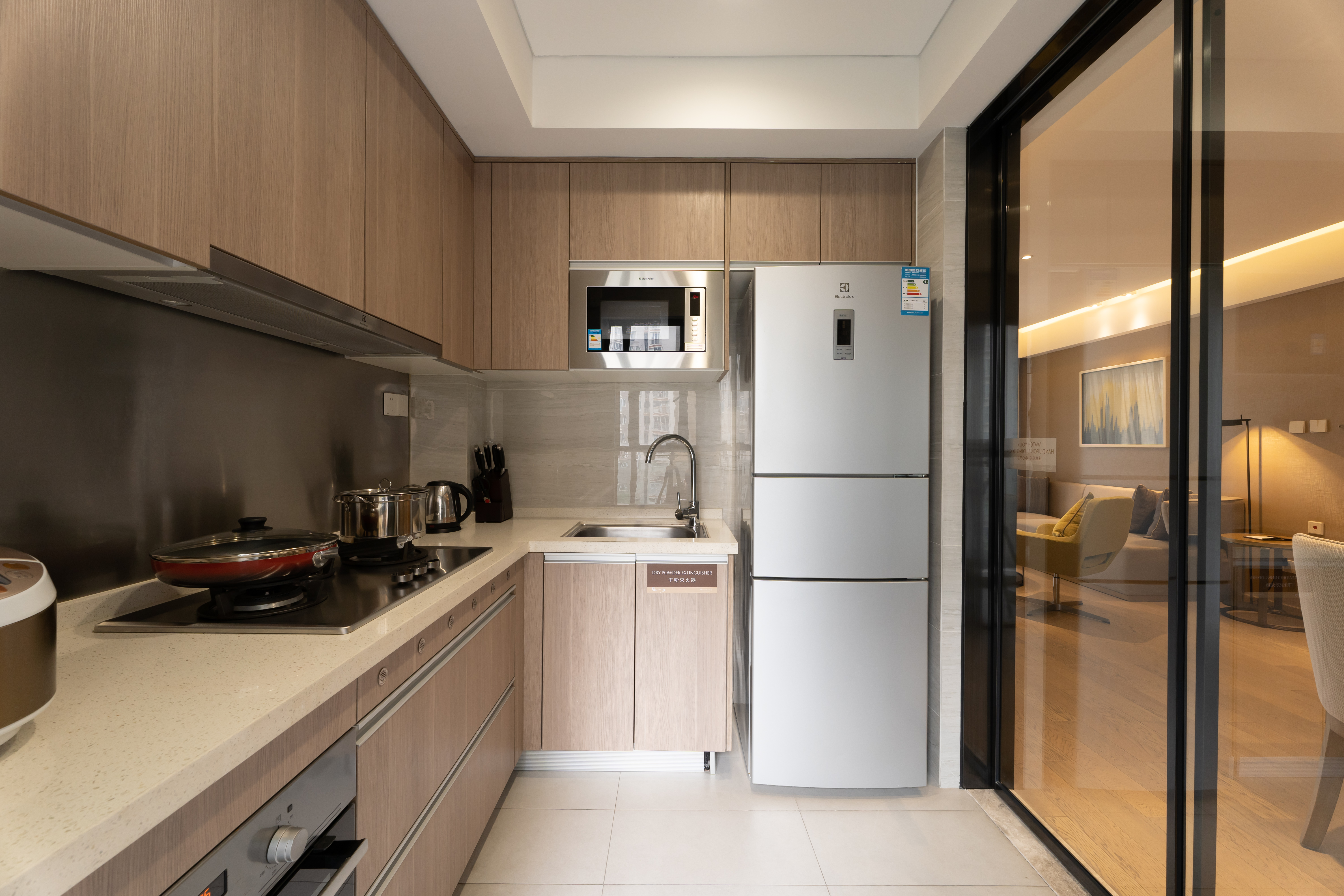 ガス式コンロ、大型冷蔵庫