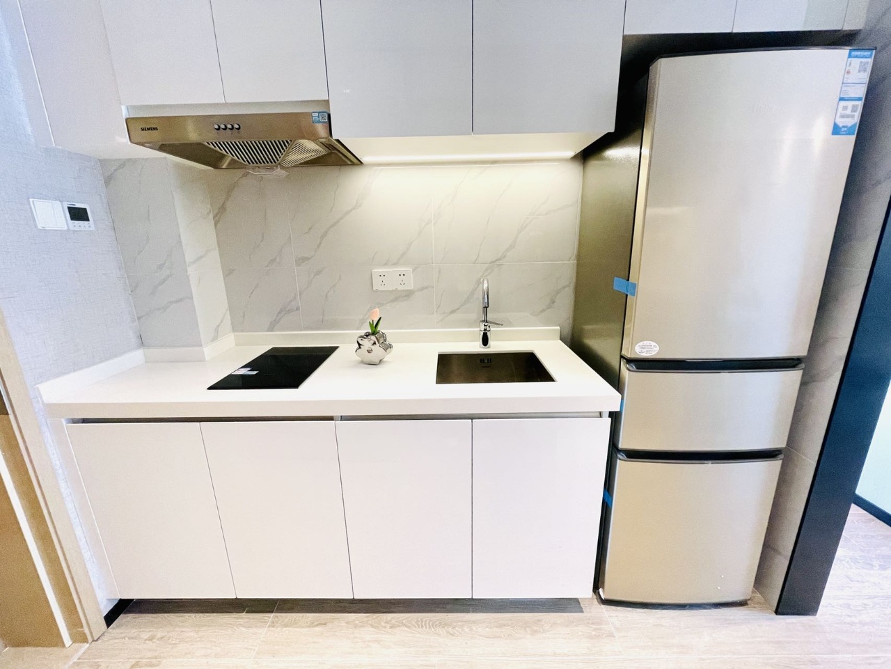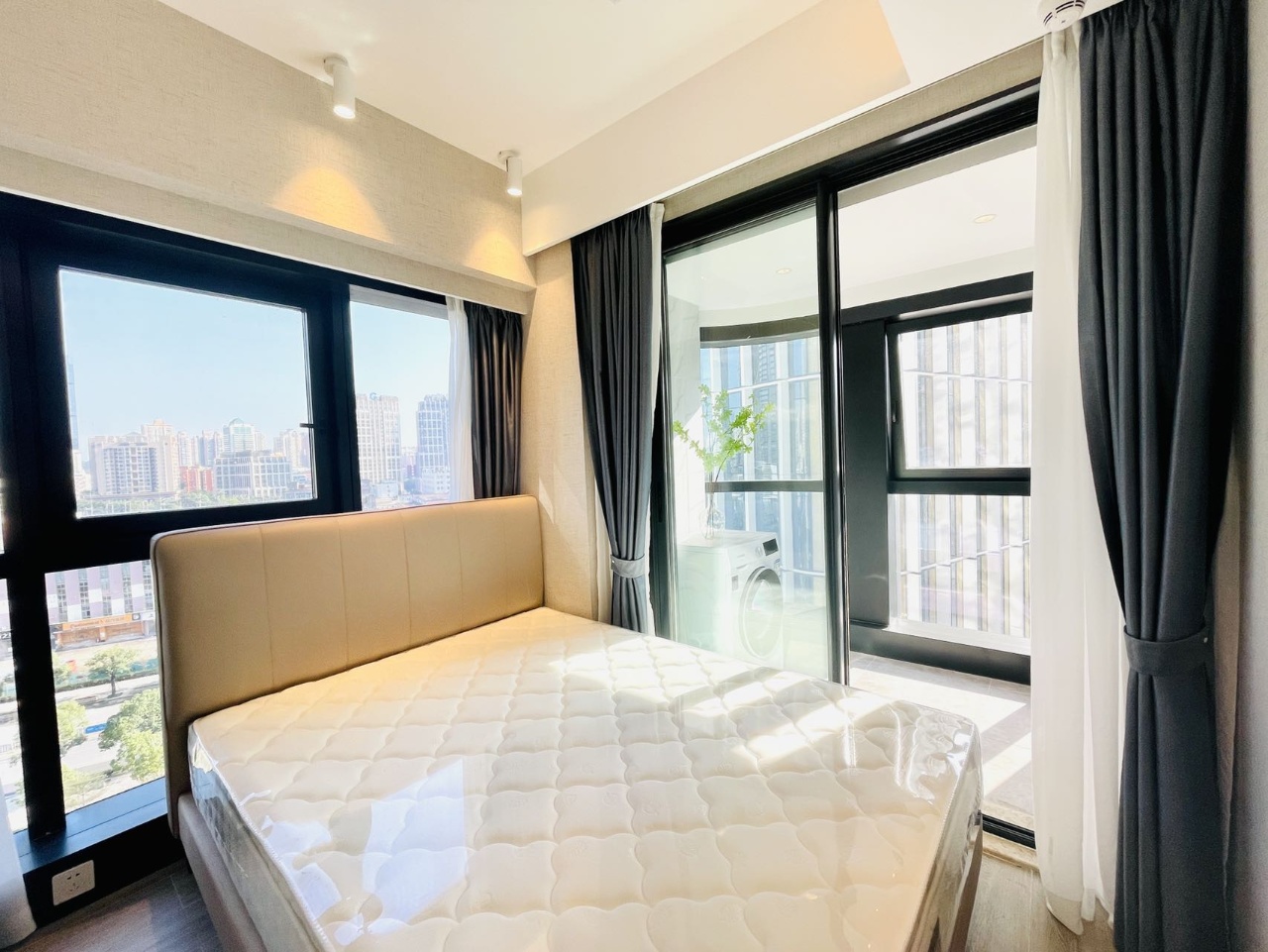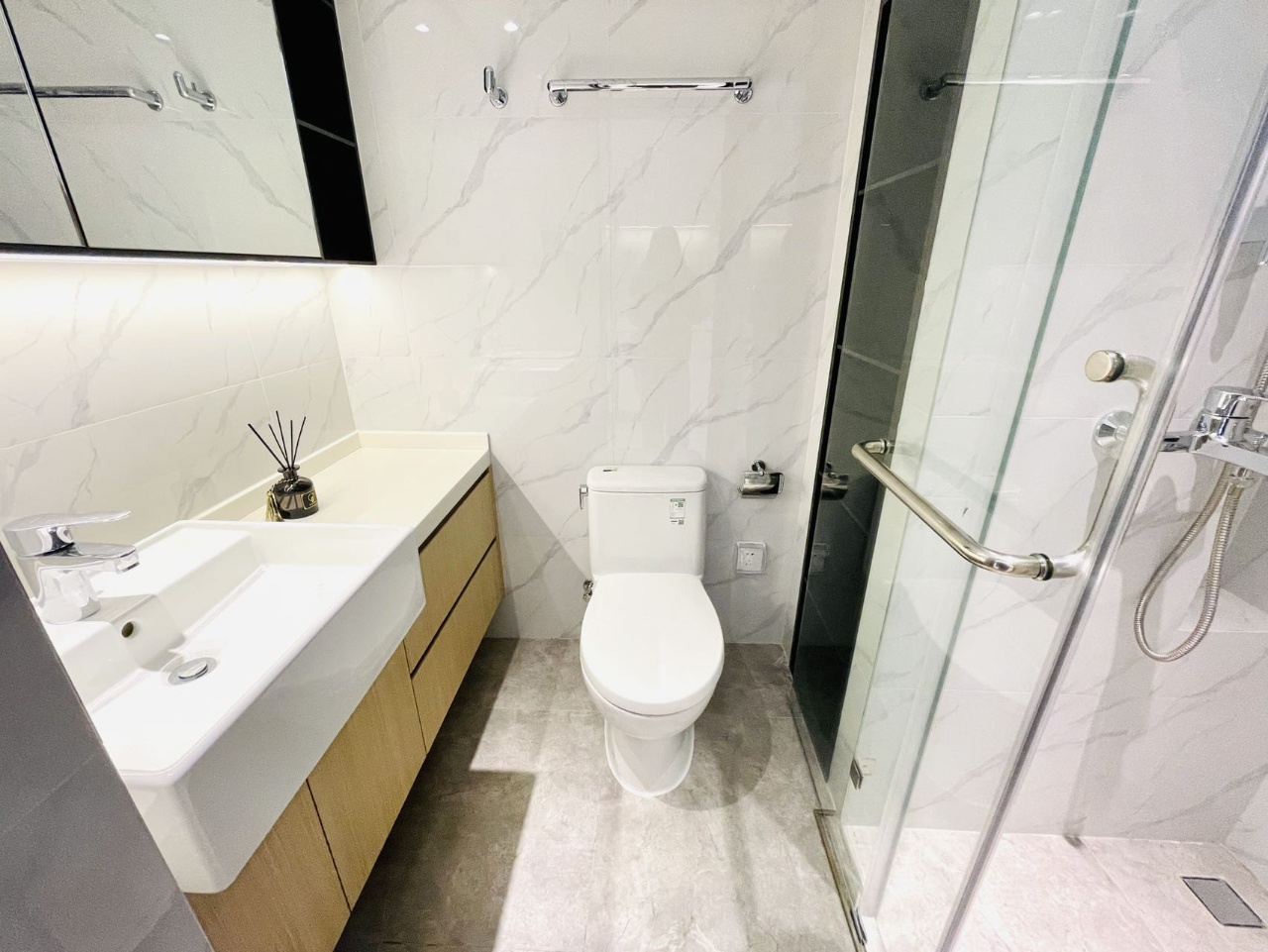 全室フローリング。現代風の落ち着いた内装。シャワーガラス付きで水回りも安心。
