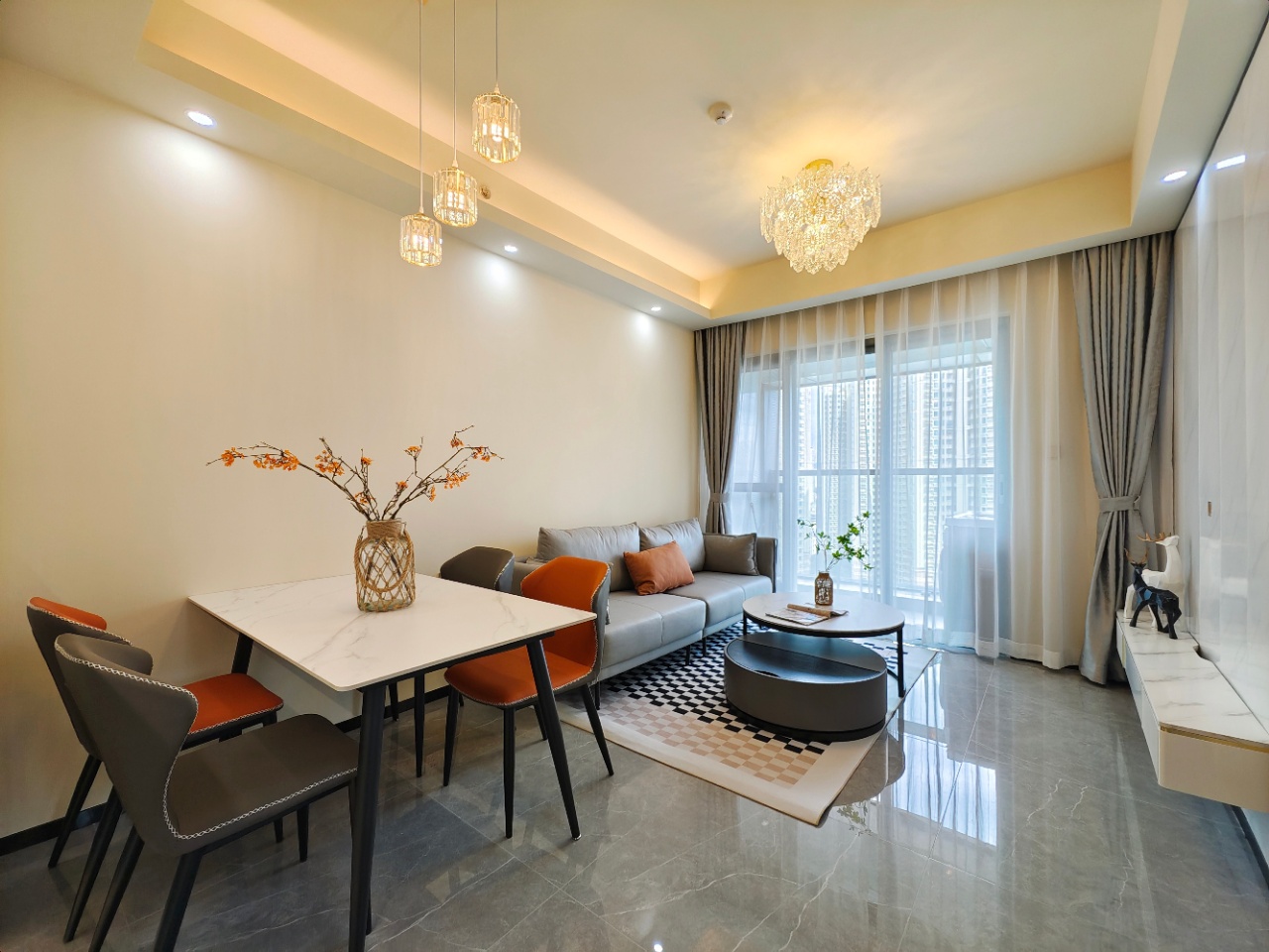 昨年完成したばかりの築浅マンション。付近には喜荟城、华润万象汇、水贝IBC MALL、深圳天河城购物中心などショッピングモール多数で生活に便利です。5号線、7号線の駅が近くにあり、3号線の水贝駅も徒歩圏内で利用できます。また、公園もあり、お散歩やジョギングも楽しめます。