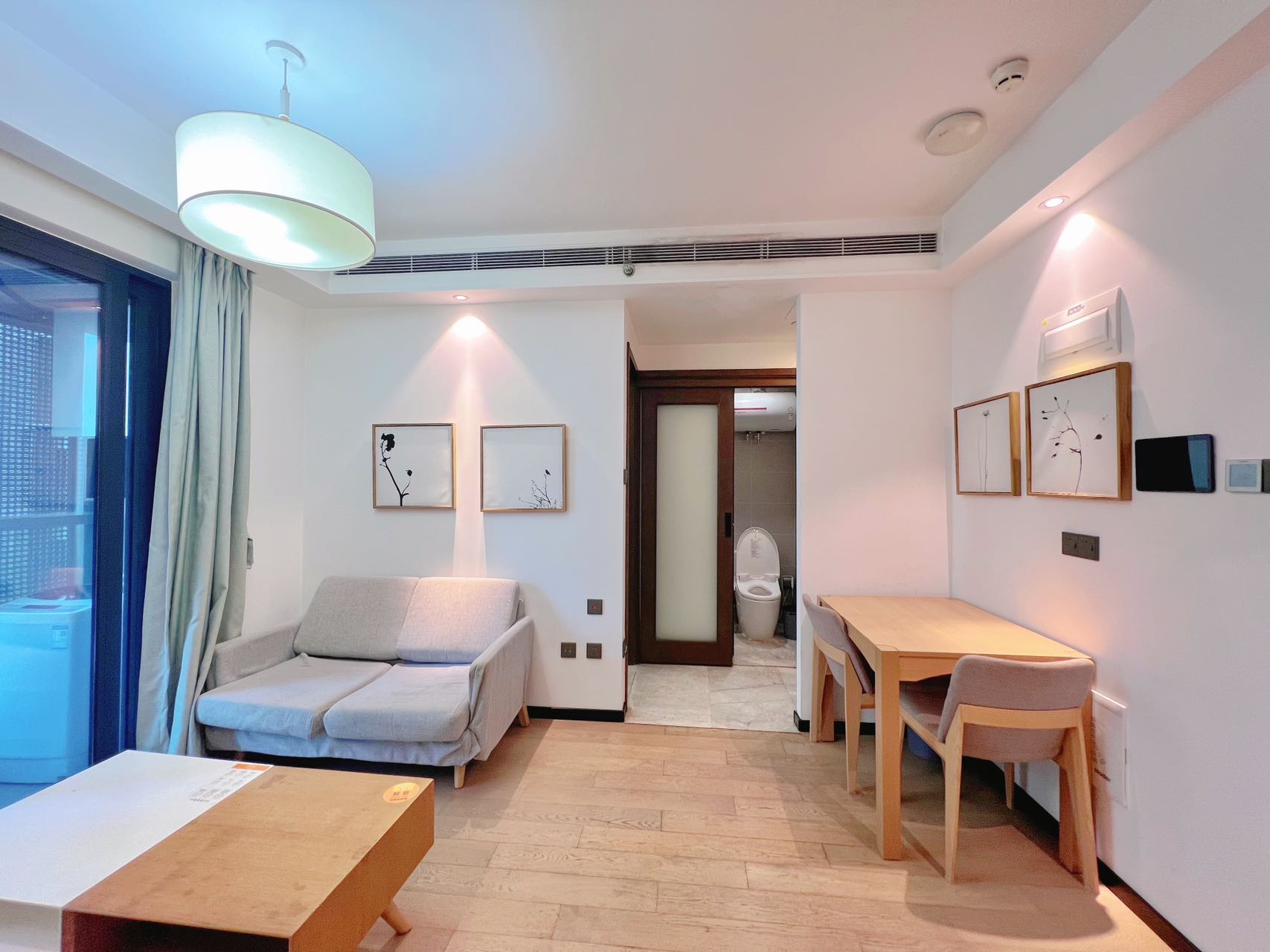 フローリング張りのシンプルな内装。単身者やご夫婦向けの2LDK。ウォシュレット付。収納もたっぷり。
